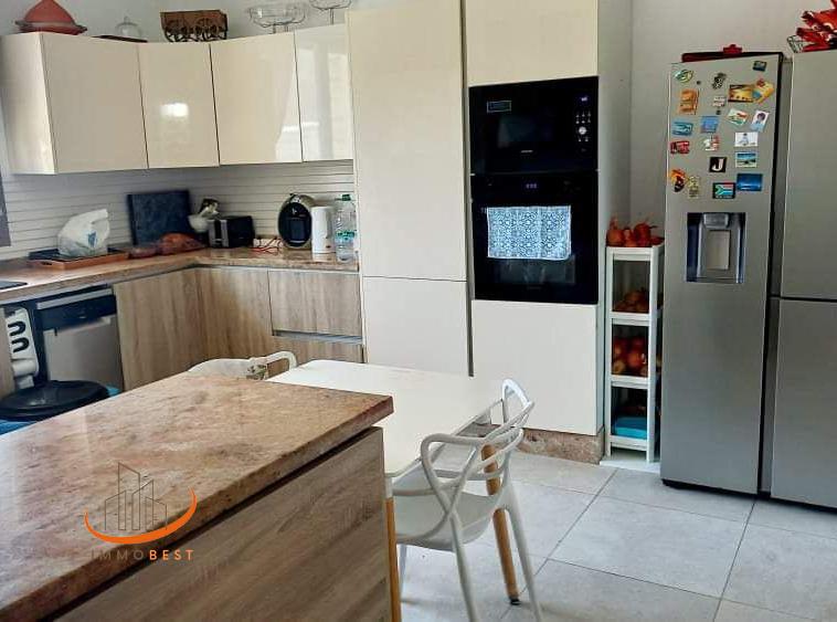 – Au rez de chaussée : un salon marocain, un salon européen, un coin cheminée, un séjour, une cuisine, une terrasse, une piscine sécurisée, des toilettes invités.