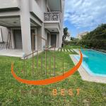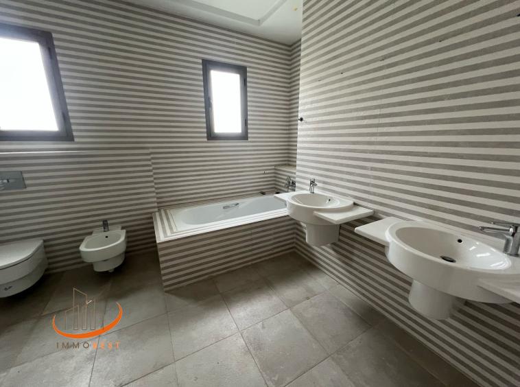 Dar bouazza, belle Villa en vente, dans une  résidence de prestige, sécurisée avec beau jardin et piscine, à 10 mn de Morocco mall, moderne, d’une superficie de terrain de : 452 m² et construite de : 485 m²/3 niveaux