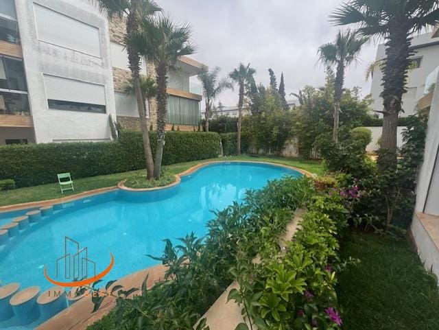 Dar bouazza, très joli appartement meublé en location situé au Rez de jardin, belle résidence proche de la mer, avec ascenseur