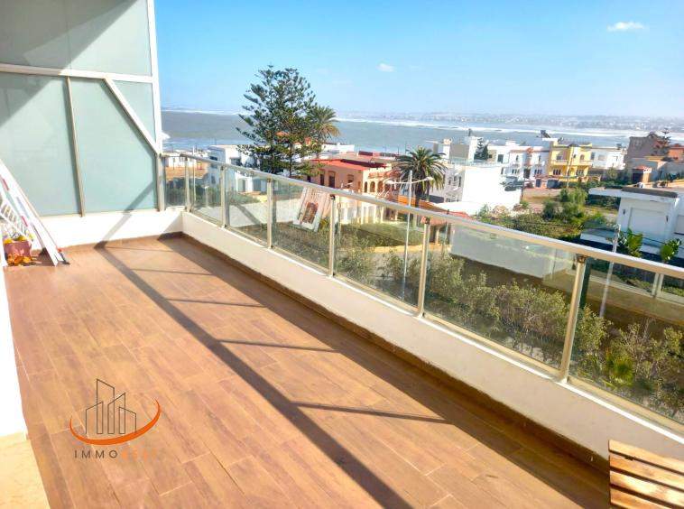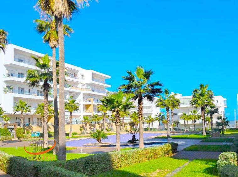 Location magnifique appartement situé Dar Bouazza, meublé, avec une belle vue sur mer et la côte, en connexion directe avec la mer, une grande sécurité et tranquillité, avec jardins, deux piscines (adultes et enfants), espace de promenade, terrains de tennis ..etc