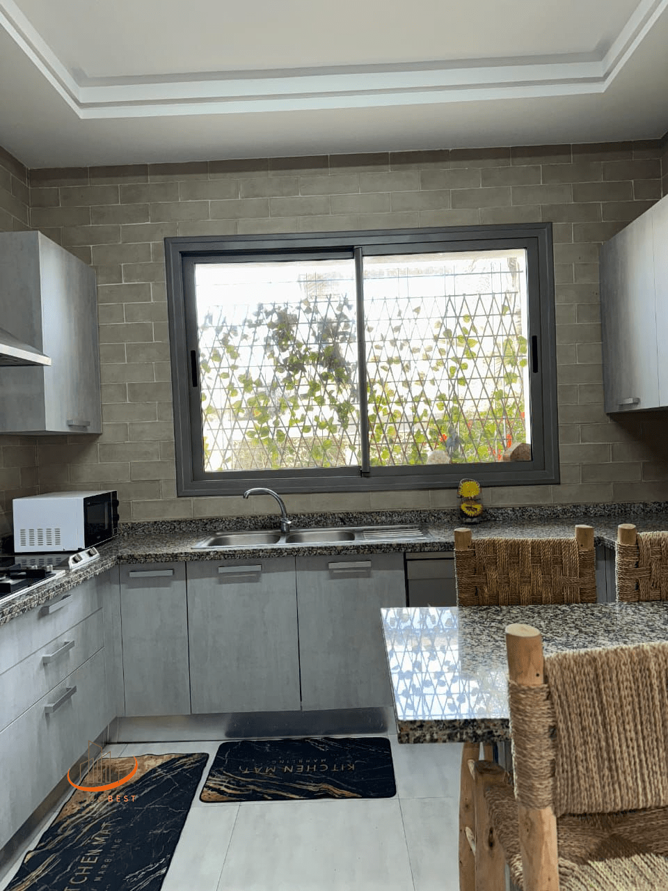 deux cuisines équipées, 1 au Rez de chaussée et l’autre au sous sol,